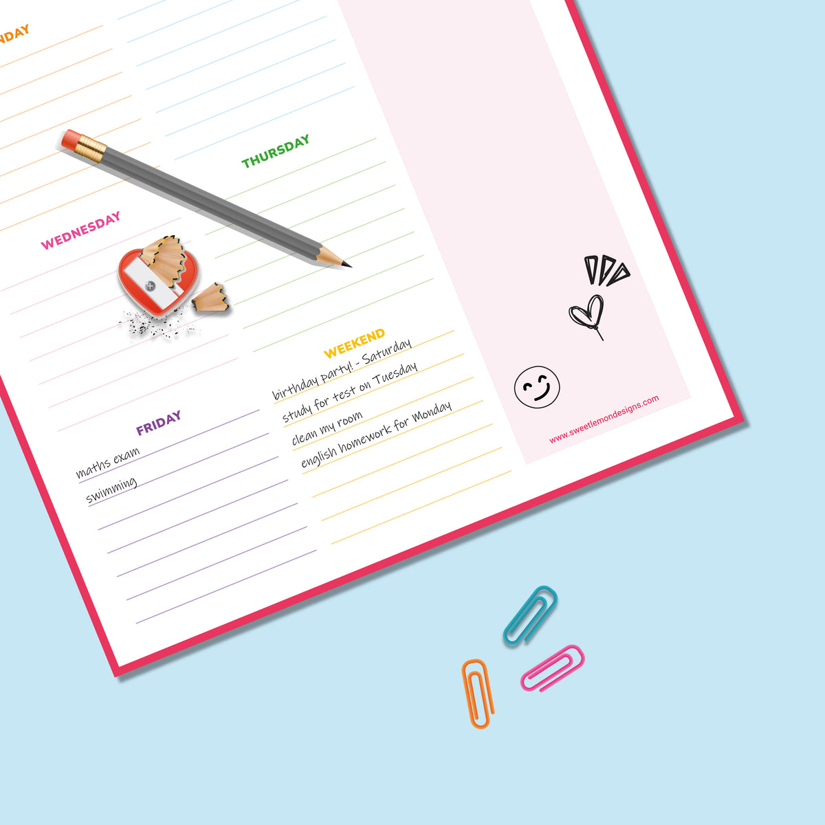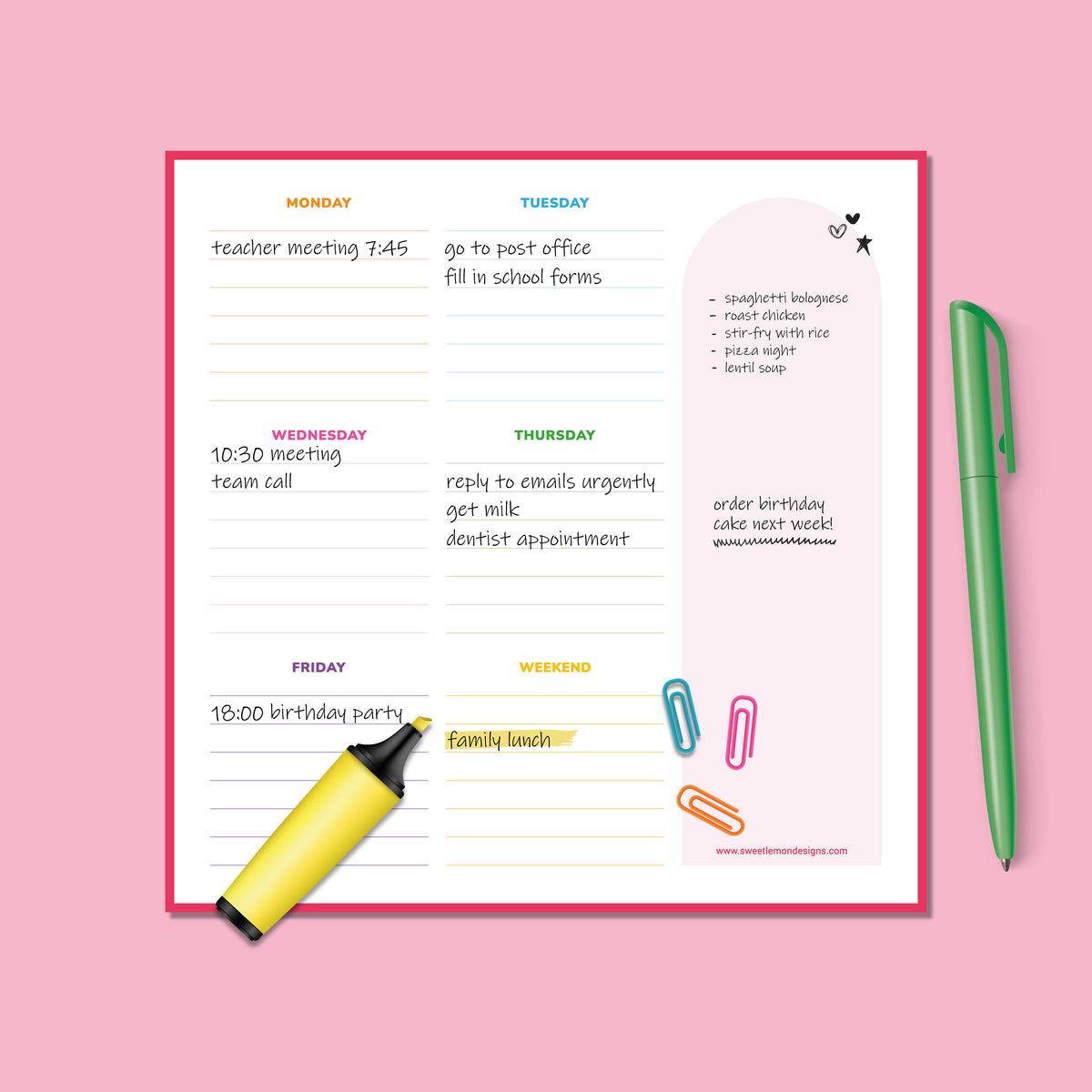 This notepad was made to live on your desk and keep your week on track.
